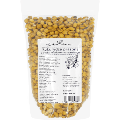 Kukurydza prażona o smaku miodowo-musztardowym Kuchnia Zdrowia to propozycja dla osób, które szukają przekąski o zdecydowanym charakterze. Chrupiąca forma i dopracowane połączenie smakowe sprawiają, że produkt dobrze sprawdza się jako alternatywa dla klasycznych słonych przekąsek. Nuty miodowe dodają lekko słodkiego akcentu, a musztardowy profil podkreśla wyrazistość całości.