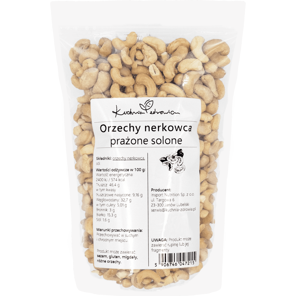 Orzechy nerkowca całe prażone solone Kuchnia Zdrowia łączą delikatny, lekko słodki smak nerkowców z wyraźnym dodatkiem soli. Proces prażenia wydobywa z nich intensywniejszy aromat i sprawia, że są jeszcze bardziej apetyczne. To uniwersalna propozycja zarówno do podjadania, jak i do codziennego wykorzystania w kuchni.