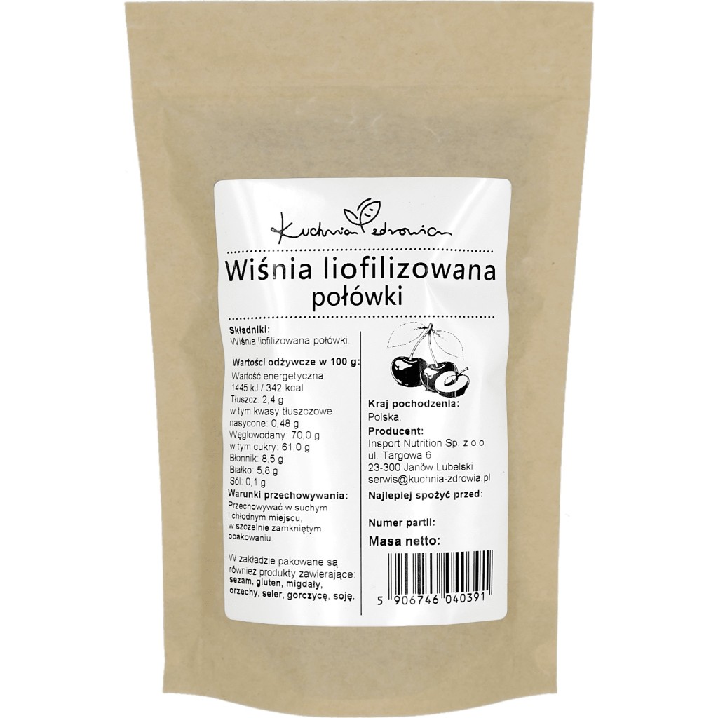 Wiśnie liofilizowane w połówkach (100 g) to wygodna forma owocu, która świetnie sprawdza się w codziennej kuchni. Połówki są gotowe do użycia od razu — bez krojenia, bez pestkowania i bez dodatkowego przygotowania. Dzięki temu łatwo dodasz je do śniadań, deserów i wypieków, oszczędzając czas i zachowując pełną wygodę.